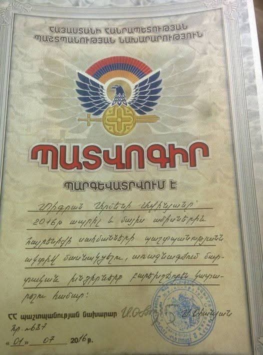 Ասեմ, որ ծառայությունից ազատված է նաև Երևանի քաղաքապետը, ում ճակատին գրված է՝ փսորիազ 14950 $, բայց ով պատվոգիր է ստացել, որ մայիս ամսին մասնակցել ապրիլյանին։