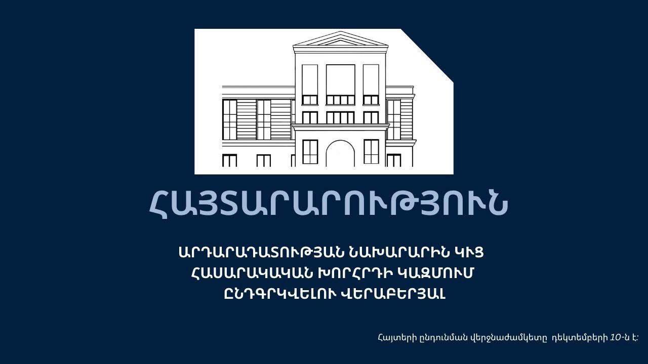 Հայտերի ընդունման վերջնաժամկետը սույն թվականի դեկտեմբերի 10-ն է: