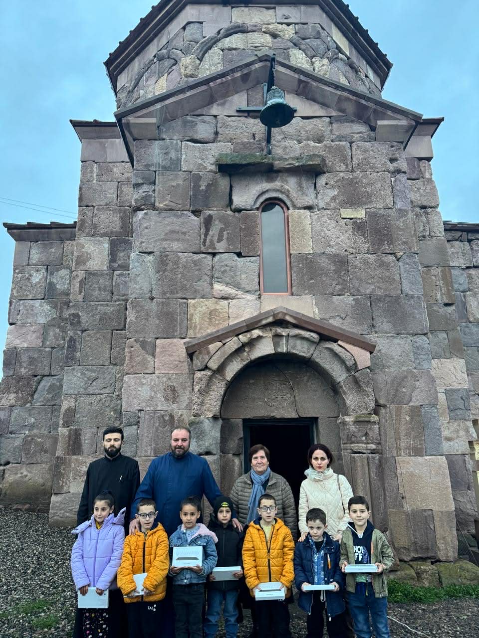 Ուրախալի էր նաև այն, որ աշակերտները բոլորը անգիր գիտեին Տերունական աղոթքը և Սրբազան հոր հետ աղոթելուց հետո ստացան նրա օրհնությունն ու բերած Սամսունգ Գալաքսի հարթէկրան, բազմագործառույթ թվային սարքերը։